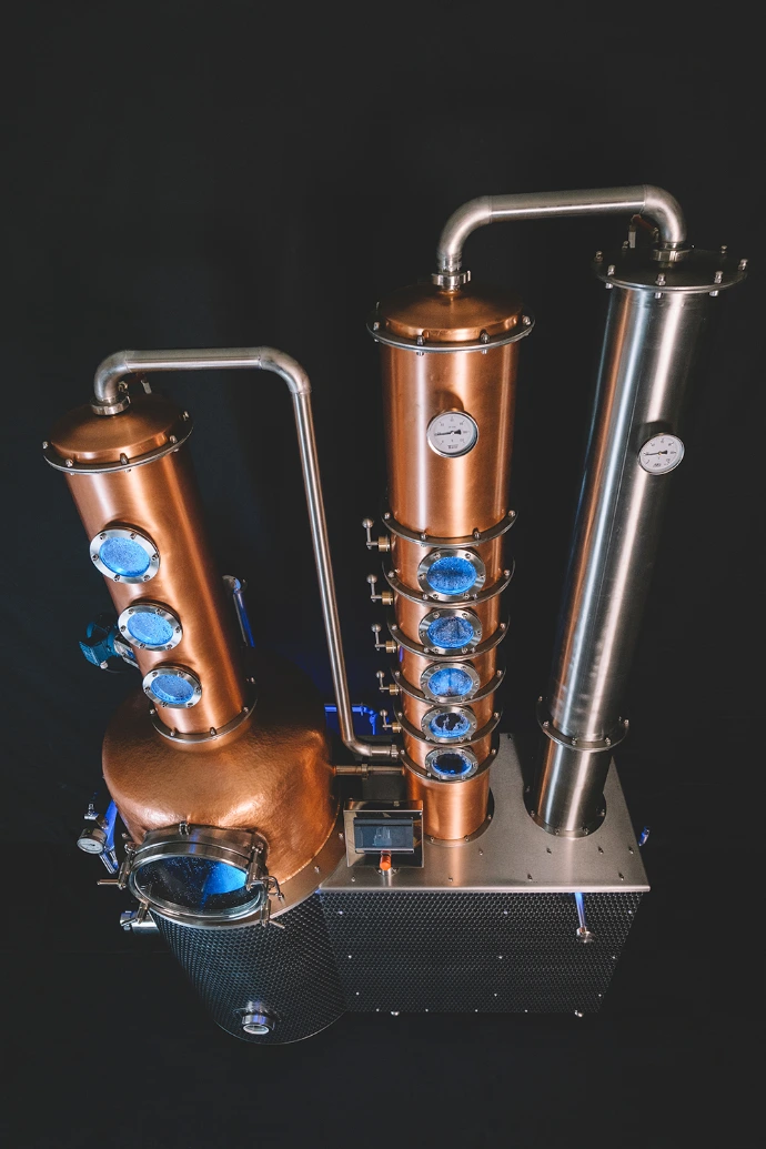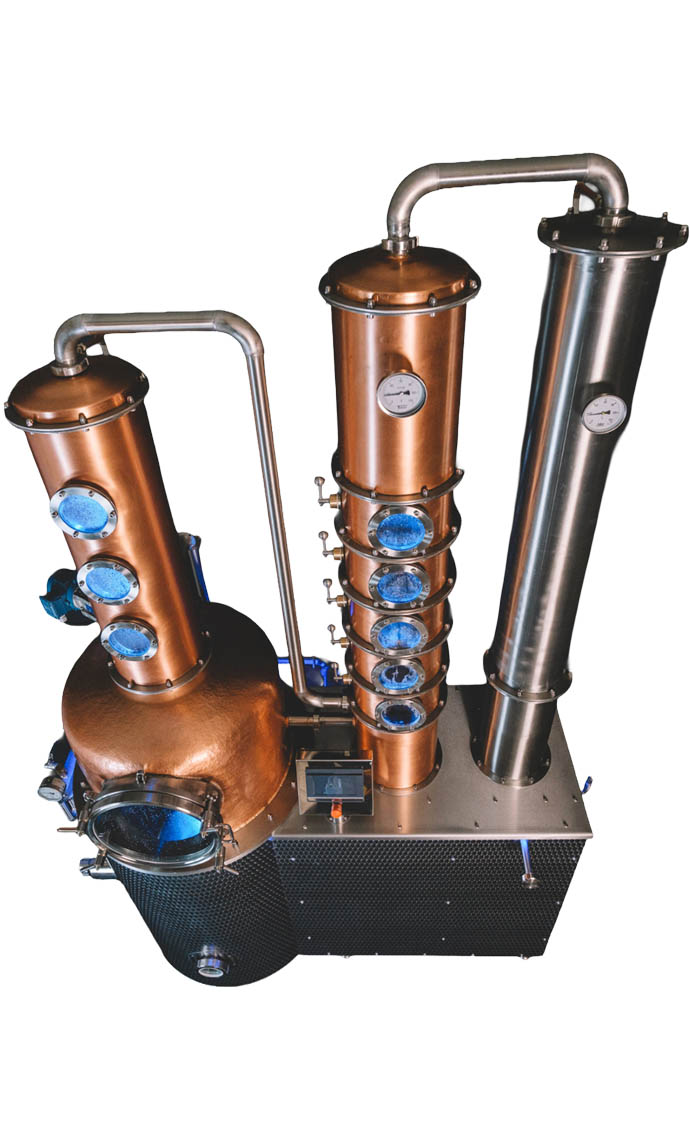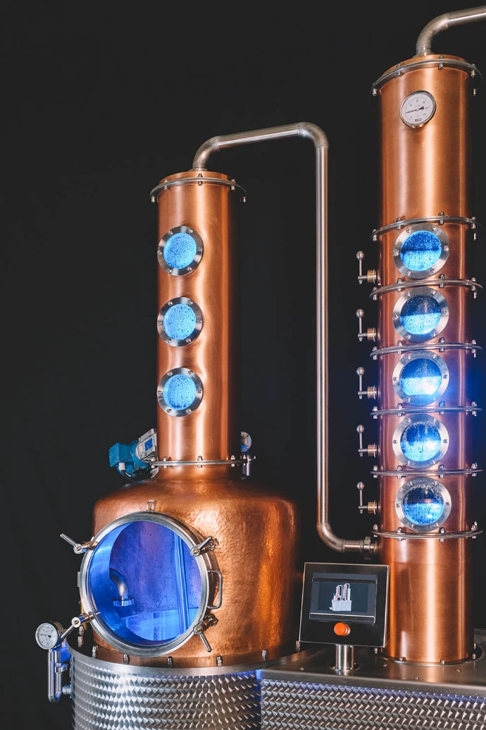A ZENIT 500 oszlopos lepárló a PATINA WORKS legújabb modellje, amelyet kifejezetten ipari főzdék számára terveztek. Az 500 literes üsttérfogat lehetővé teszi aromás gyümölcspárlatok, gin, whisky, vodka és egyéb szeszes italok előállítását.