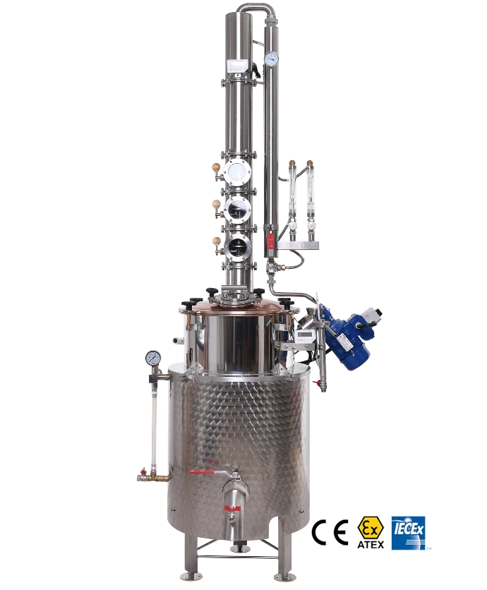 - Annak érdekében, hogy az oszlop tökéletesen működjön, egy csökkentett vízteres, gyors reakcióidejű, duplafalú lepárló üstön keresztül biztosítható a megfelelően szabályozott hőközlés.