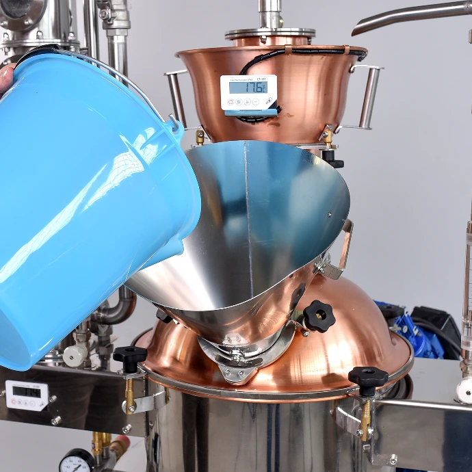Az üstben egy rozsdamentes acél (inox) aromakosár található, valamint a kupola felett további 3 darab réz aromakosár helyezkedik el. A gin, vodka vagy pálinka receptjétől függően különböző botanikák, fűszerek vagy aszalt gyümölcsök helyezhetők a kosarakba.