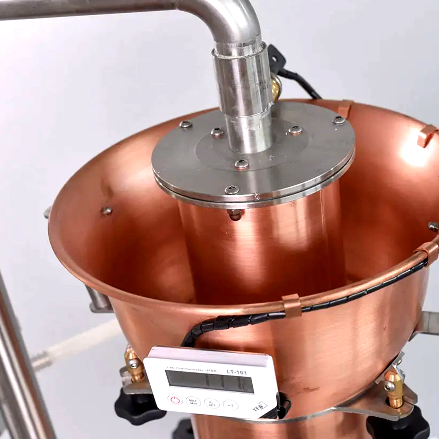 Tizedes pontosságú digitális hőmérőket alkalmazunk a cefre és a deflegmátor hőmérsékletének mérésére, mivel már a tizedfoknyi eltérés is jelentős hatással lehet a végtermék ízére. A hűtőn analóg hőmérő található, mivel a hűtővíz hőmérsékletét egy kb. 20 °C-os tartományon belül kell tartani.