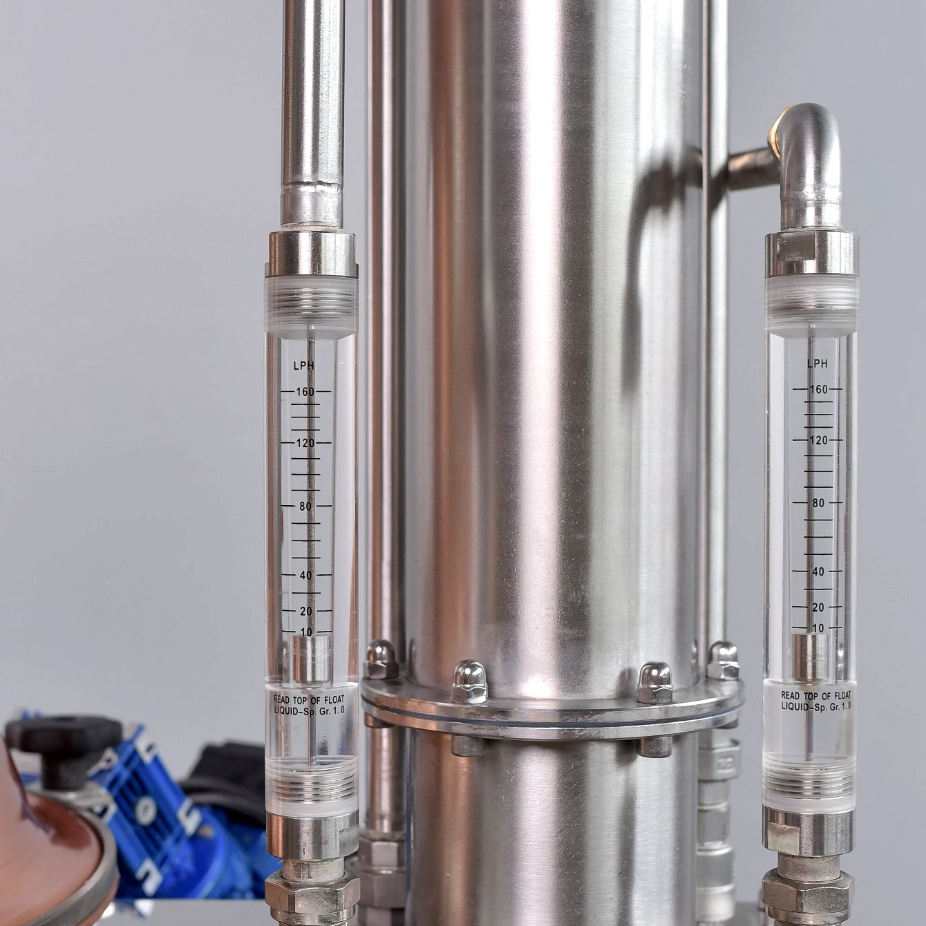 - deflegmátor rotaméter (egylépcsős lepárlás): a helyes reflux mennyiség, a fejhőmérséklet és az oszlop egyensúly beállításában nélkülözhetetlen