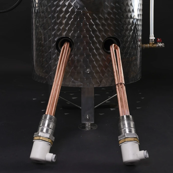Két darab, rézbevonatú, 6 kW-os elektromos fűtőszál közvetlenül a vízköpenybe van merítve. Ennek köszönhetően a vízköpeny lényegesen gyorsabban felmelegszik, így a cefre hamarabb eléri a forráspontot, mint más berendezések esetében. A fűtőszálak működését az elektromos kapcsolószekrény szabályozza.