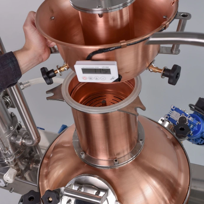Fontos a kilépő gőz hőmérsékletének figyelése a Pistorius pontos szabályozásához, hogy a végtermék a lehető legjobb ízű legyen.