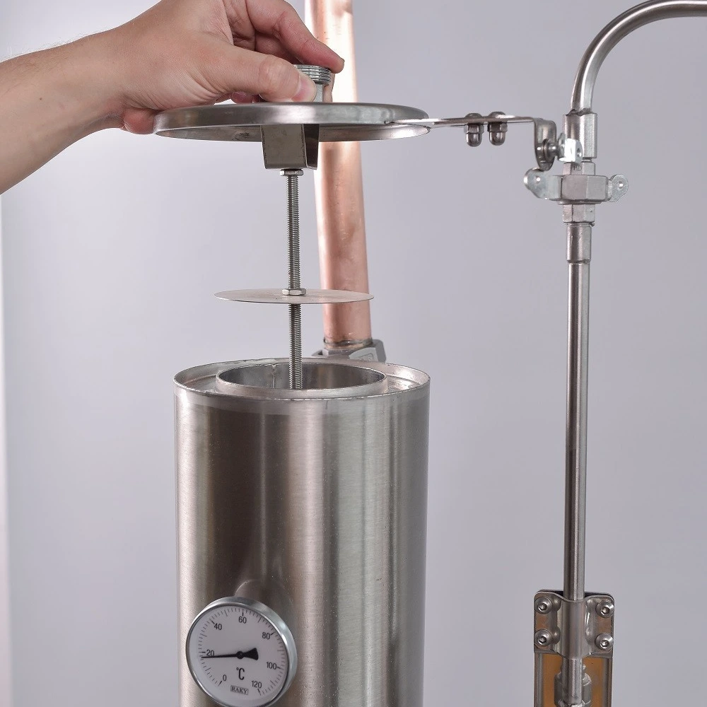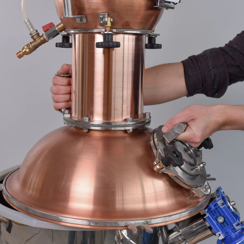 A gép teljes magassága 237 centiméter, ezért a telepítés során a talpakat rögzíteni kell, hogy a pálinkafőző borulásbiztos legyen.