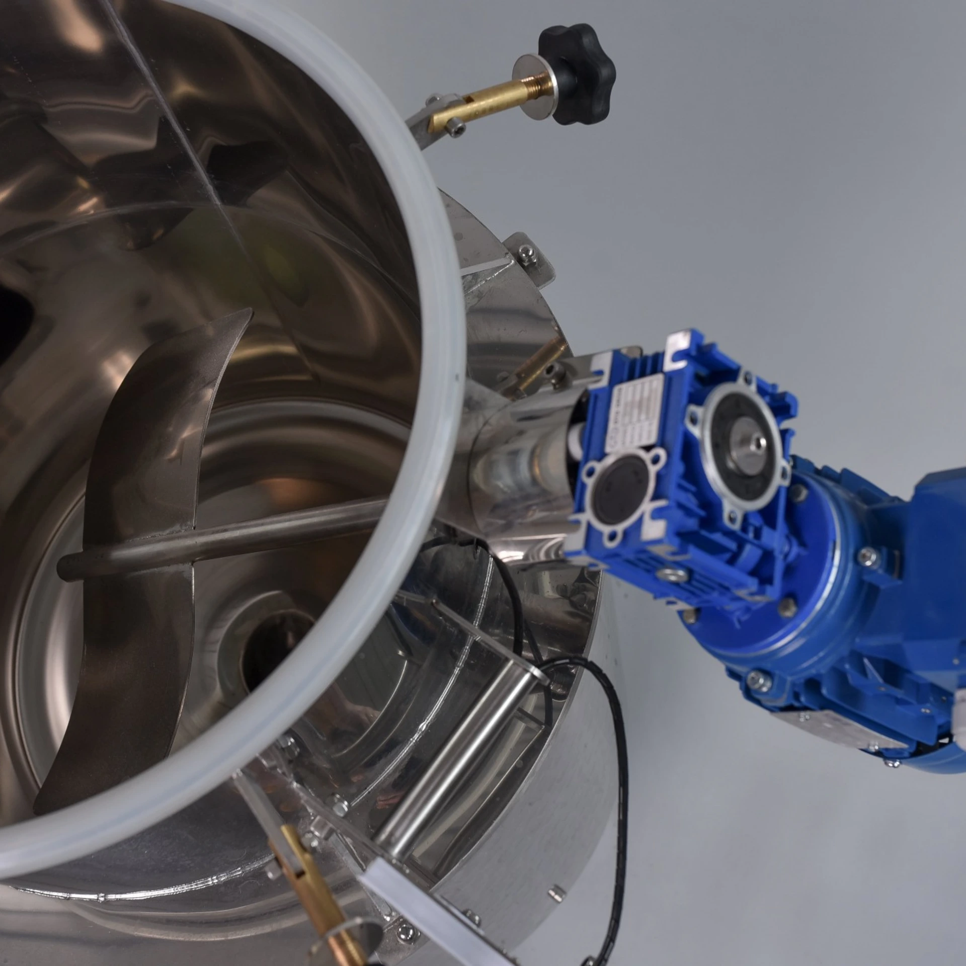 A keverőlapát szára egy M16-os masszív csavaron keresztül rögzül a motor forgató tengelyéhez. A keverőlapát tehát oldható és indokolt esetben eltávolítható az üstből.