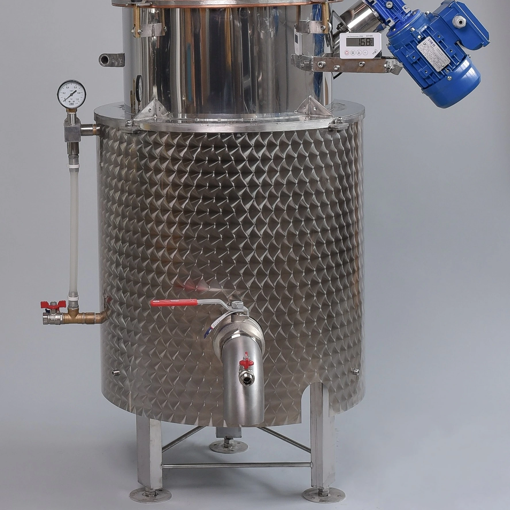 Nagy méretű, megfelelő szögben elhelyezett keverőlapát biztosítja, az üstbe töltött cefre megfelelő keveredését, mozgatását.