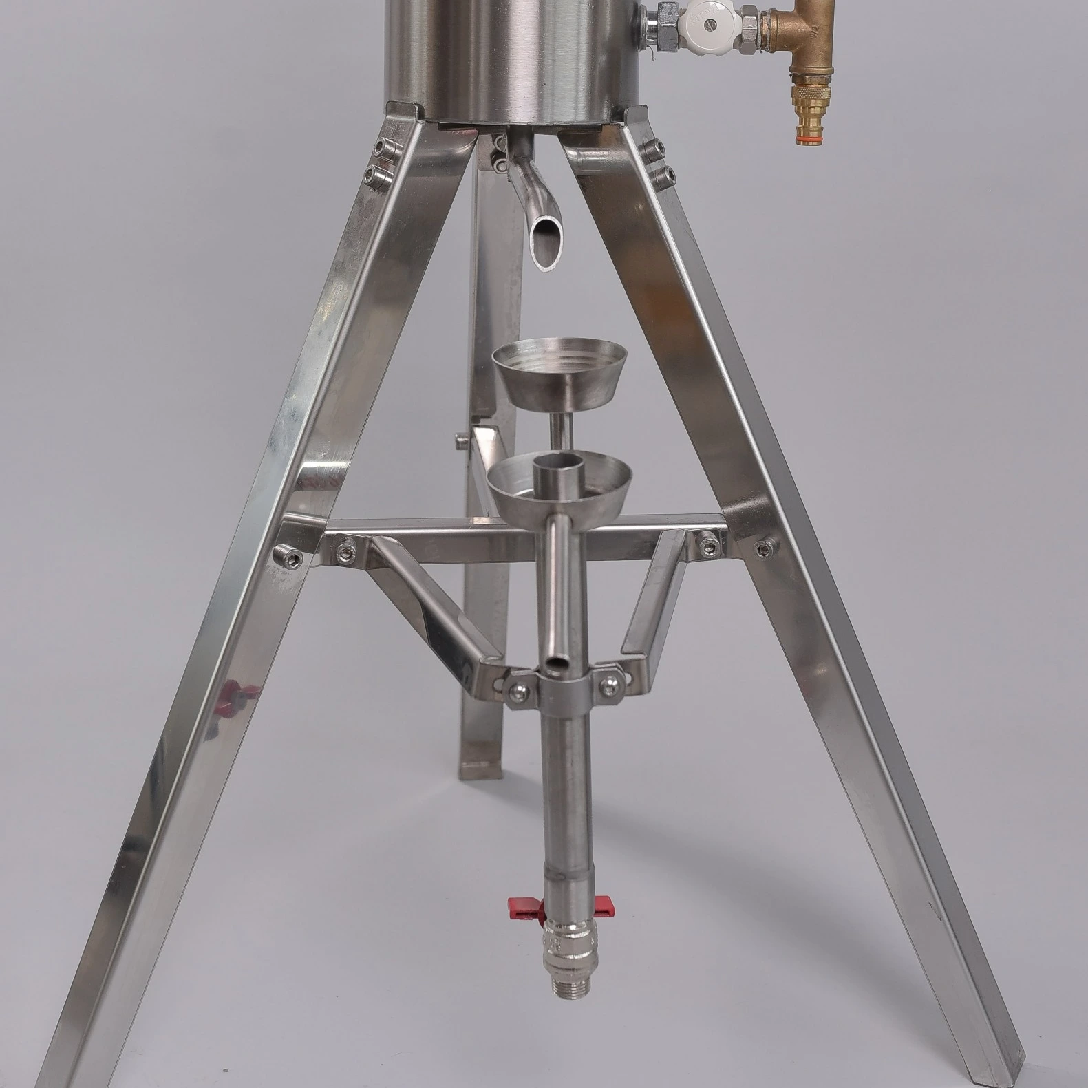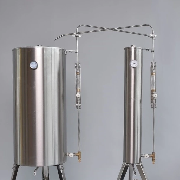 Hegesztett rozsdamentes láb, amely masszív zártszelvényekből és tömör köracélból készült, biztosítja, hogy a pálinkafőző gép stabilan álljon.
