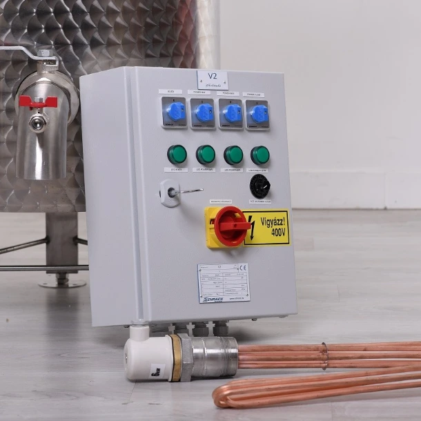 Két darab, rézbevonatú, 6 kW-os elektromos fűtőszál közvetlenül a vízköpenybe van merítve. Ennek köszönhetően a vízköpeny lényegesen gyorsabban felmelegszik, így a cefre hamarabb eléri a forráspontot, mint más berendezések esetében. A fűtőszálak működését az elektromos kapcsolószekrény szabályozza.
